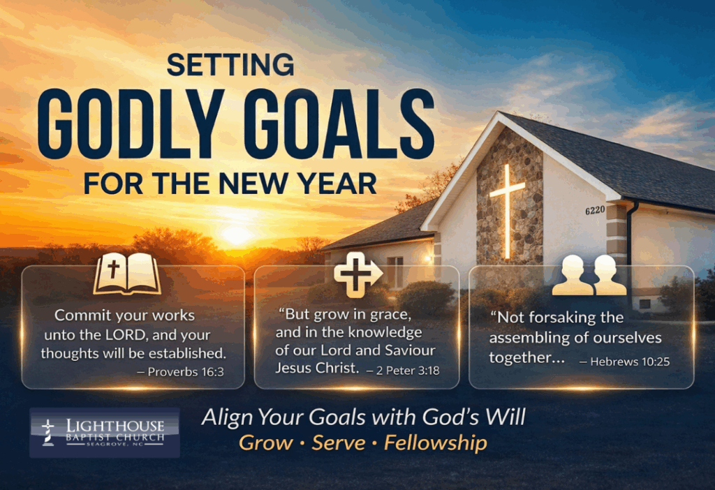The new year is more than a calendar change; it is a spiritual opportunity. When goals are shaped by God’s Word and supported by God’s church, they become tools for lasting growth. If your desire this year is to walk closer with God, grow in faith, and live with eternal purpose, Lighthouse Baptist Church in Asheboro is here to help you take those steps forward.